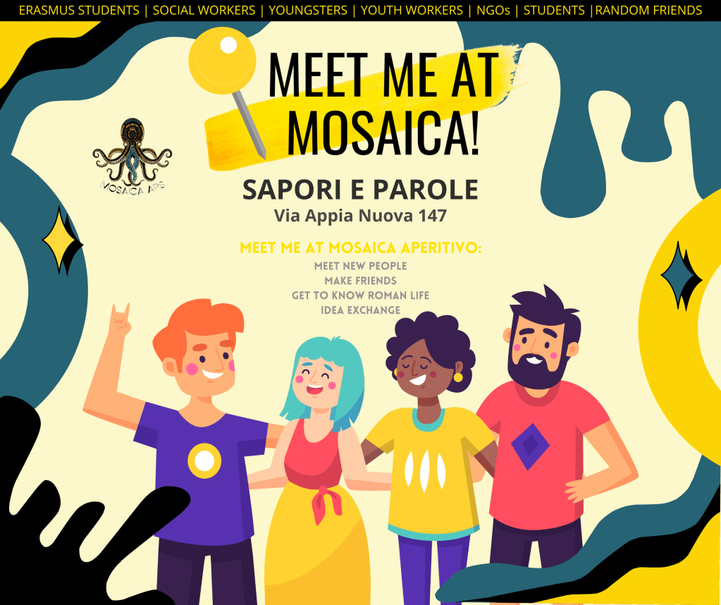 “Meet Me at Mosaica” is open to anyone with a curious mind and a passion for cultural exploration. Whether you’re an international student, a lifelong learner, an expat in Rome, or simply someone looking to make new friends and discover the world in your own city, you are welcome!